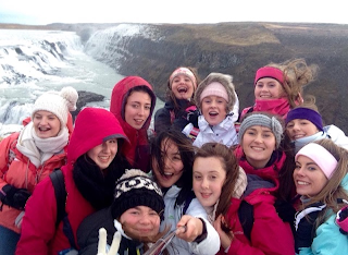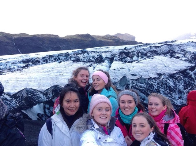 with crampons, a harness and an ice hack. On the walk, we climbed into an ice