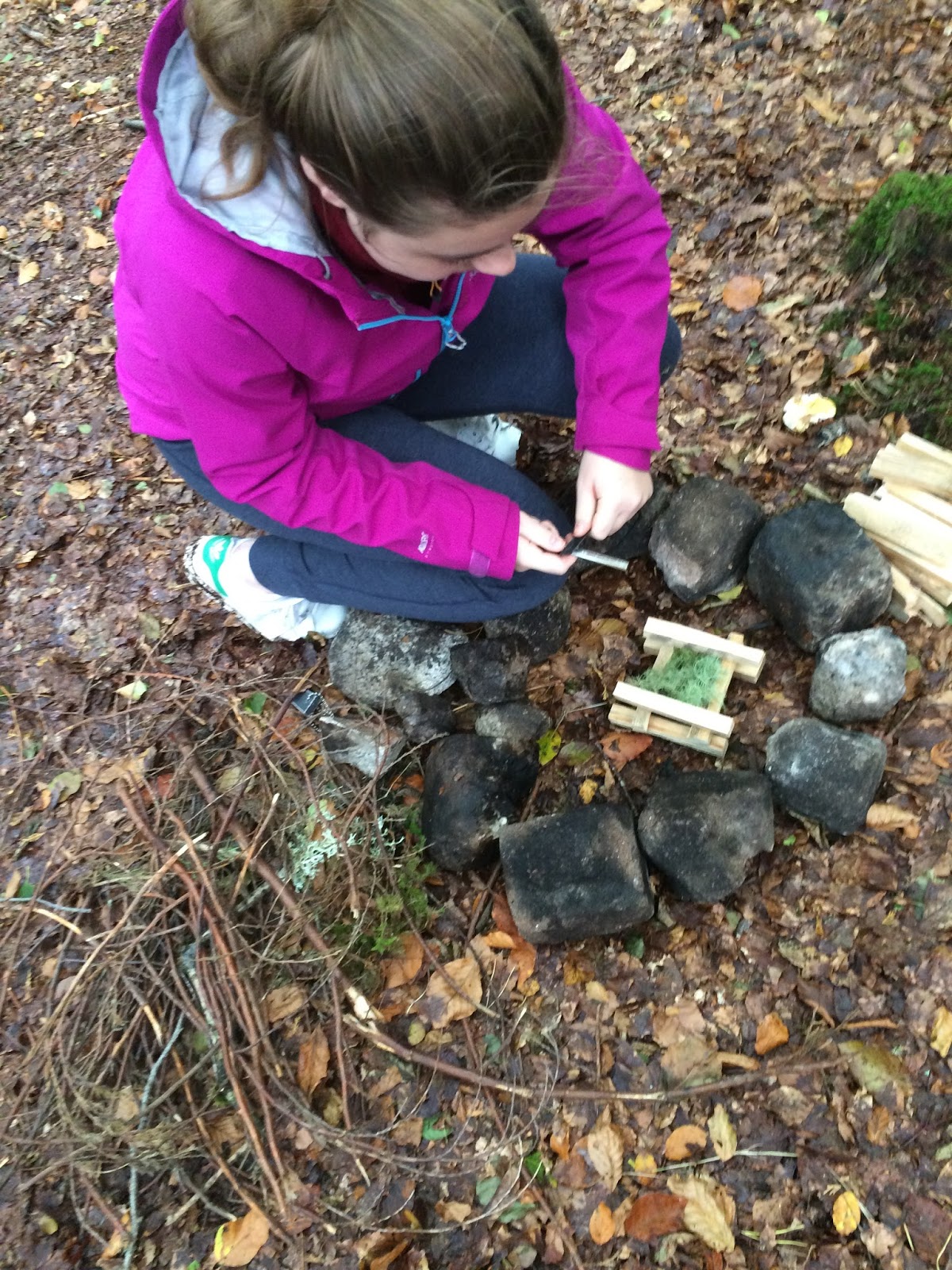 constructing a fire, and cooking a meal on it. We got to work straight away and